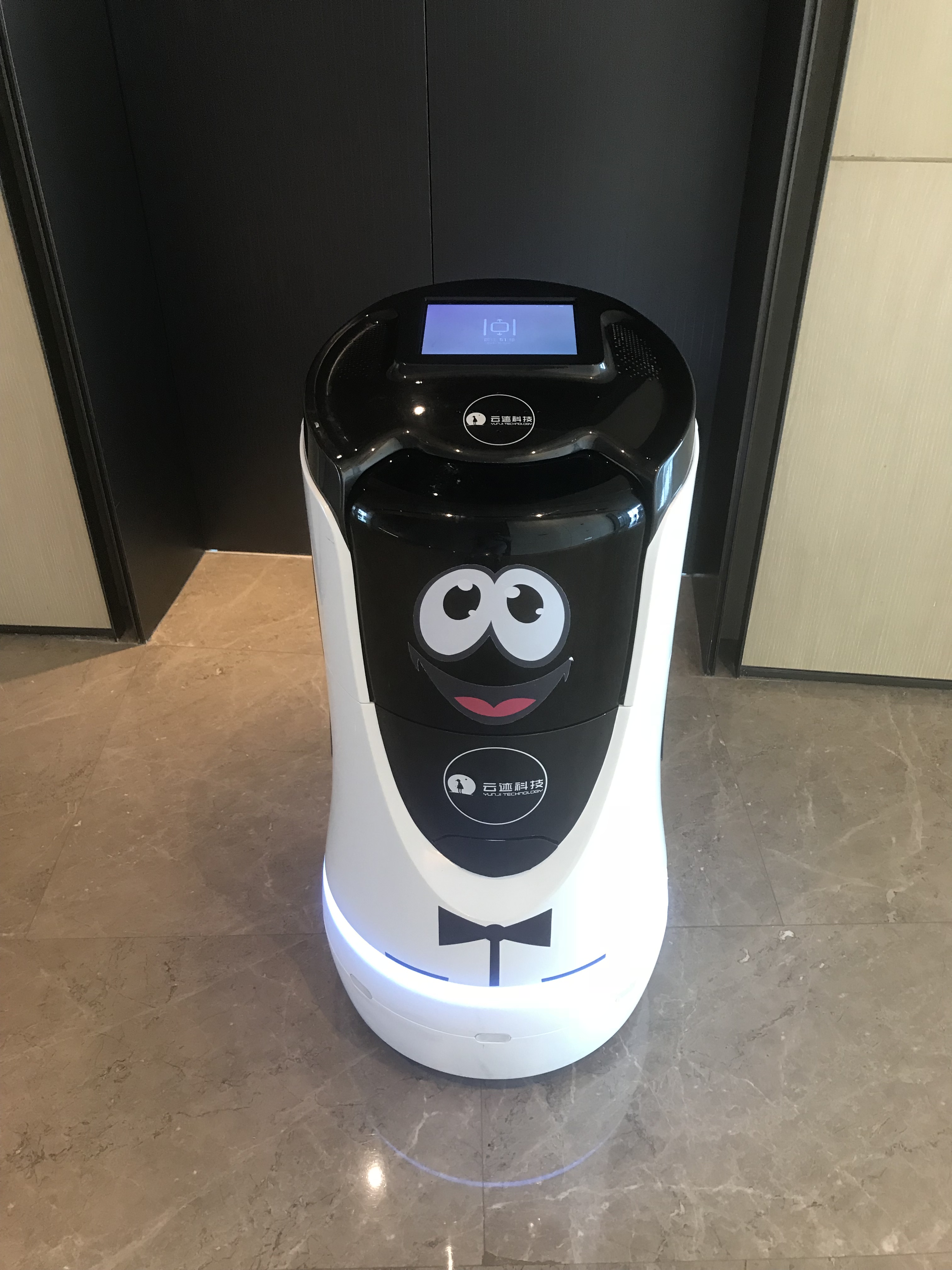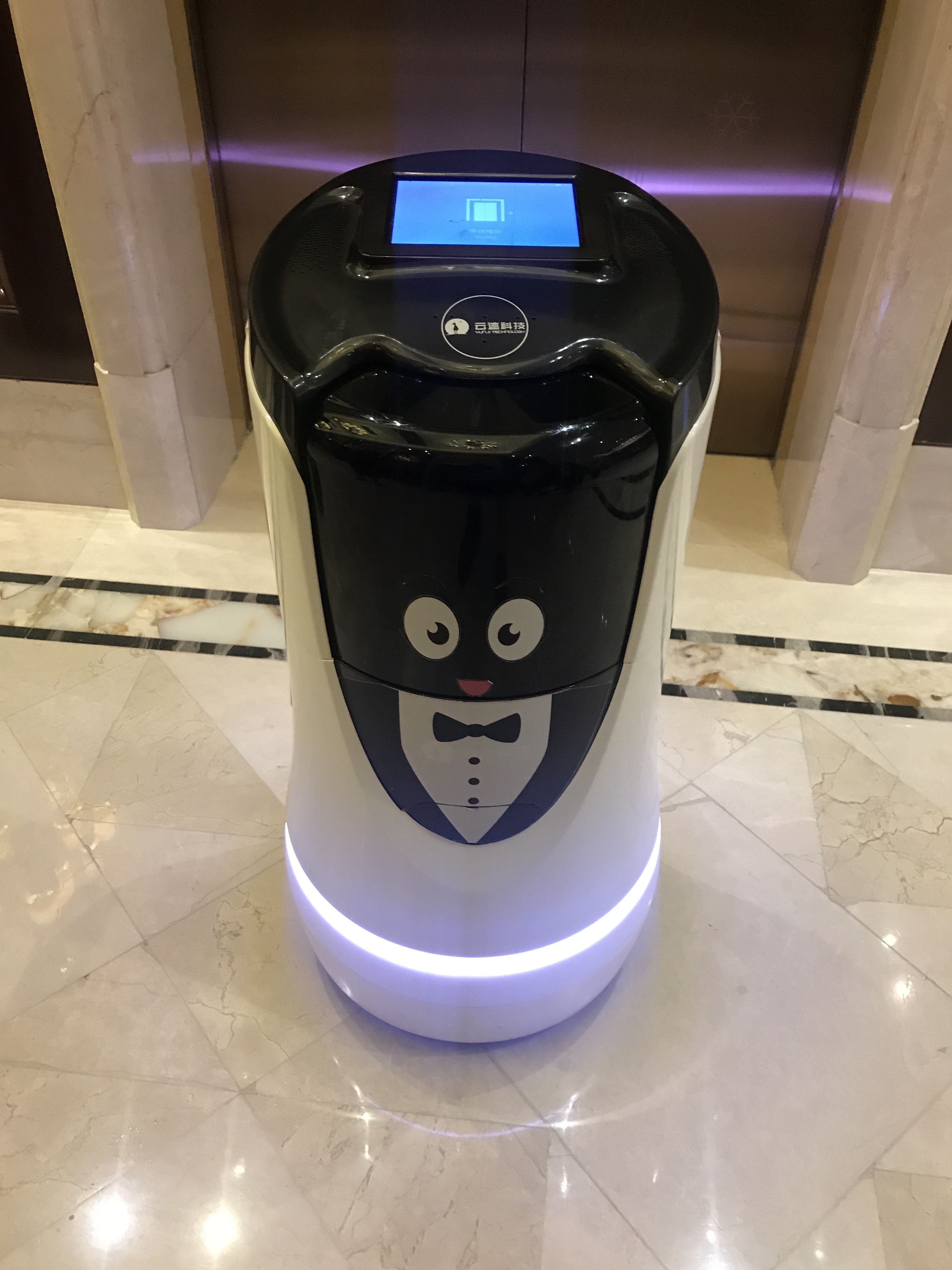 ホテルにいた中国版ペッパーくん(?)。8月に吉林省のホテルにいたのと同型なので、中国では全国的に普及しているのだろうか。よく見ると顔が違う。